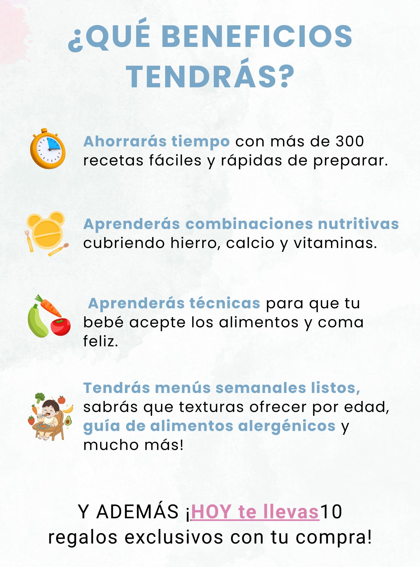 Incluye opciones para alimentación tradicional, mixta o BLW,
